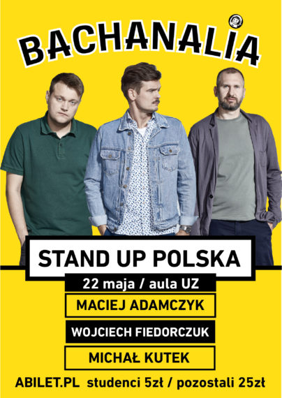 Już w zeszłym roku mogliście bawić się do łez z najlepszymi stand-uperami w Polsce, dlatego w tym roku również zapraszamy Was do udziału w tym wydarzeniu! Na Bachanaliowej Stand-upowej scenie wystąpią: Maciej Adamczyk, Wojtek Fiedorczuk, Michał Kutek!